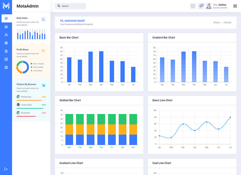 - Chart.Js, Flot Charts